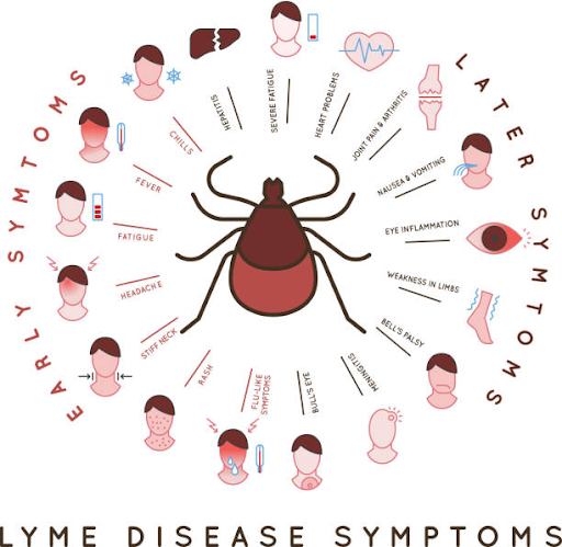 Flu-like Symptoms: If a person is infected with lyme, they may experience muscle pain, chills, fevers, and even fatigue. These symptoms are similar to flu virus so, it is crucial to identify whether these feelings develop after a tick bite or not.