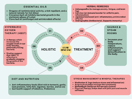 - Therefore, integrating holistic approaches with conventional medical approaches can offer a comprehensive strategy for managing Lyme disease. The individualised care and professional consultation are paramount to ensure safety and efficacy